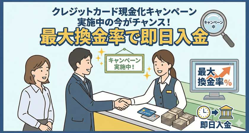 クレジットカード現金化キャンペーン実施中の今がチャンス!最大換金率で即日入金